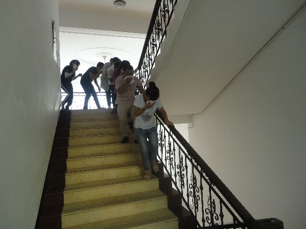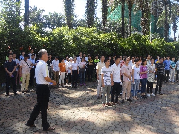 上午9點(diǎn)30分,演練正式開(kāi)始:公司辦公樓一樓大廳意外起火,濃煙四起,消控中心發(fā)現(xiàn)火情后立刻向安全生產(chǎn)負(fù)責(zé)人匯報(bào)情況,安全生產(chǎn)負(fù)責(zé)人收到火情后第一時(shí)間啟動(dòng)消防應(yīng)急預(yù)案,通知滅火行動(dòng)組人員趕赴現(xiàn)場(chǎng)控制火情,并通知疏散引導(dǎo)組迅速組織辦公樓內(nèi)所有人員逃生。疏散引導(dǎo)組組長(zhǎng)接到指令后,馬上通知辦公樓內(nèi)所有員工向辦公樓外撤離,安撫員工情緒,提醒大家用濕毛巾掩住口鼻,弓身沿樓梯扶手排成一列有序向外疏散逃生。