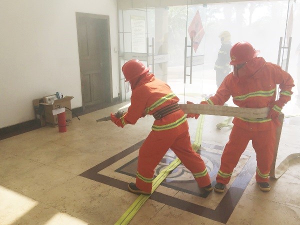 此次演練意在檢驗(yàn)消防應(yīng)急組織機(jī)構(gòu)的運(yùn)行狀況,滅火行動(dòng)組對(duì)滅火器、室內(nèi)消火栓等消防器材的熟練掌握程度,