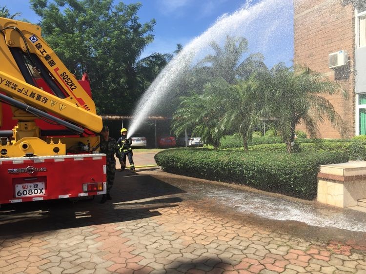 9點(diǎn)40分,金盤(pán)消防中隊(duì)2輛消防車(chē)和9名消防官兵抵達(dá)現(xiàn)場(chǎng),迅速展開(kāi)滅火和救援行動(dòng)。在消防官兵的奮勇?lián)岆U(xiǎn)下,火情迅速得到了控制,并被徹底撲滅,被困員工也被安全救出,演練就此結(jié)束。
